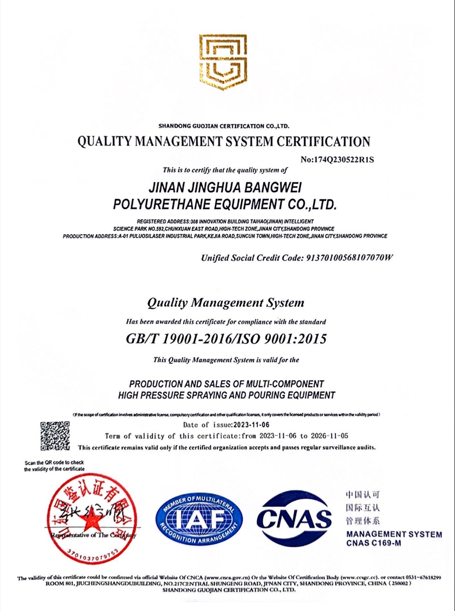 Established in 2008, JINAN JHBW PU EQUIPMENT CO., Ltd. is a professional manufacturer of polyurethane and polyurea equipment, integrating R D, production, sales, and after-sales services. The company specializes in developing and producing polyurethane spraying and injection equipment, as well as polyurea spraying systems. Its product range includes pneumatic vertical and horizontal units, hydraulic equipment, and other specialized machinery. These products are widely used across various industries such as construction, automotive, environmental protection, chemical industry, textiles, national defense, aerospace, biotechnology, and packaging. With strong technical capabilities, JHBW has grown into a competitive provider serving multiple countries and regions worldwide.